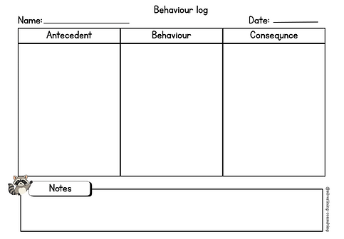 The larger boxes provide ample space to record context, communication cues, environmental factors, or emotional states. Includes a dedicated notes area for additional insights or follow-up actions.